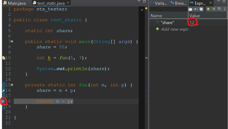 여기서 share = m + p; 부분에 breakpoint를 걸고 Debug해보았다.