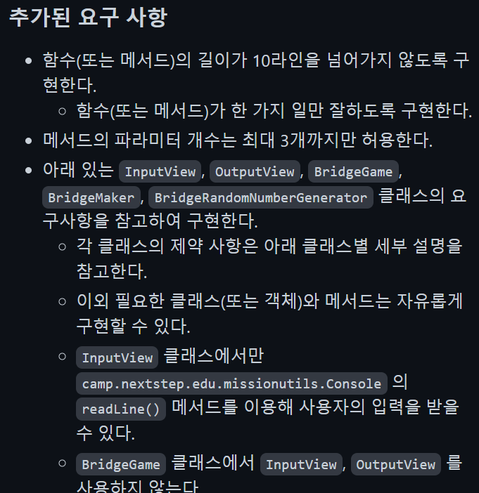 - [Add] <BridgeGame> All Variable Declaration, [Refactor] <InputView>