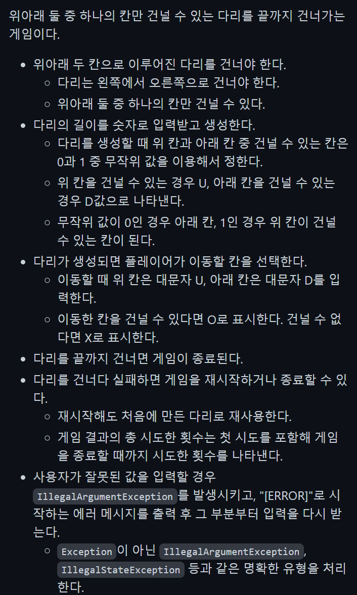 반복문이 끝나면 그 리스트를 반환하는 메서드이다. (makeBridge(int size))