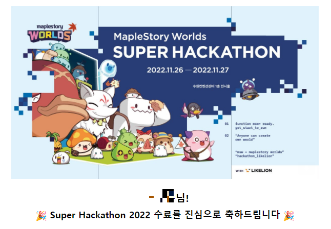 2022.09.07 ~ 2022.12.16 까지 약 3개월동안 진행한 "메이플스토리 월드 X 슈퍼해커톤 2022" 프로젝트에 대해서 회고를 작성하고자 한다.