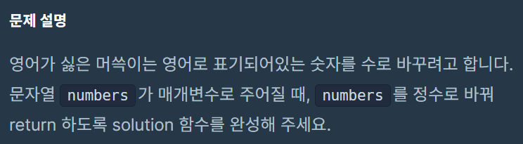 영어가 싫은 머쓱이는 영어로 표기되어있는 숫자를 수로 바꾸려고 합니다.