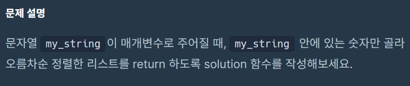 my_string 안에 있는 숫자만 골라 오름차순 정렬한 리스트를