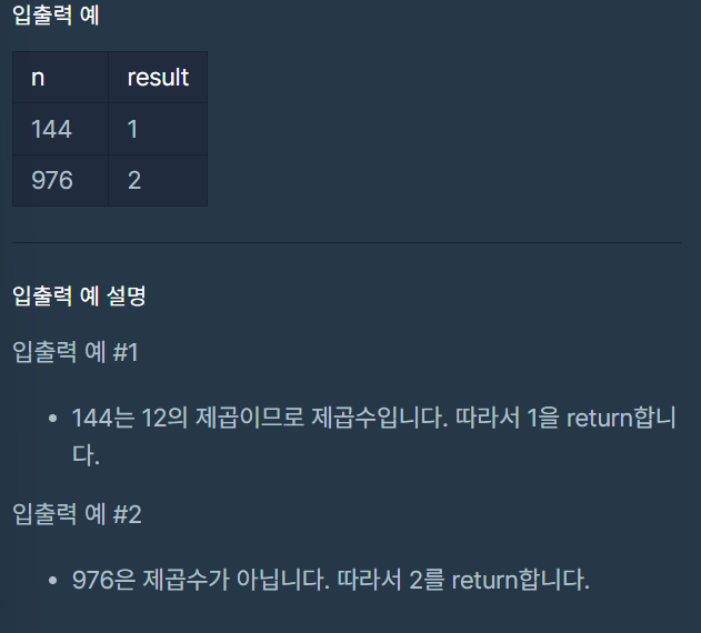 어떤 수의 제곱인지를 판별하는 문제이다. 어떤 수를 제곱하여 결과값을 구하는 것이 아닌 반대의 경우이기때문에