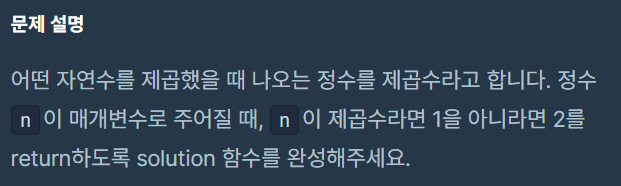 정수 n이 매개변수로 주어질 때, n이 제곱수라면 1을 아니라면 2를