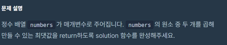 numbers의 원소 중 두 개를 곱해 만들 수 있는 최댓값을