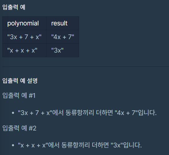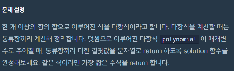 동류항끼리 더한 결괏값을 문자열로 return 하도록 solution 함수를 완성해보세요.