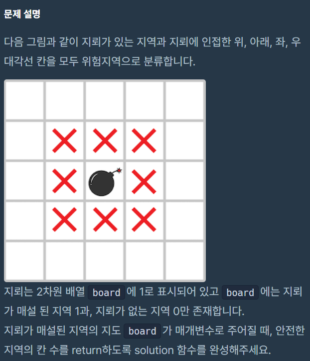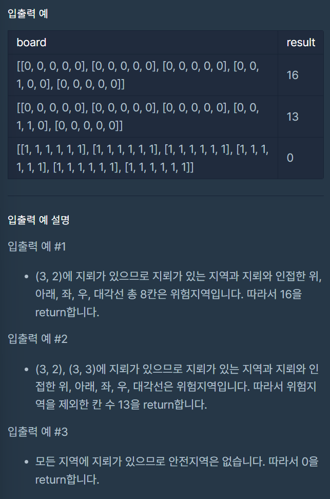 지뢰가 매설된 지역의 지도 board가 매개변수로 주어질 때,