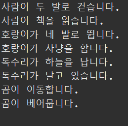 System.out.println("호랑이가 네 발로 뜁니다.");