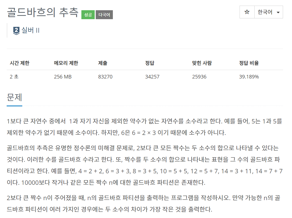 먼저 '골드바흐의 추측' 이라는 개념에 대해 알아야했다.