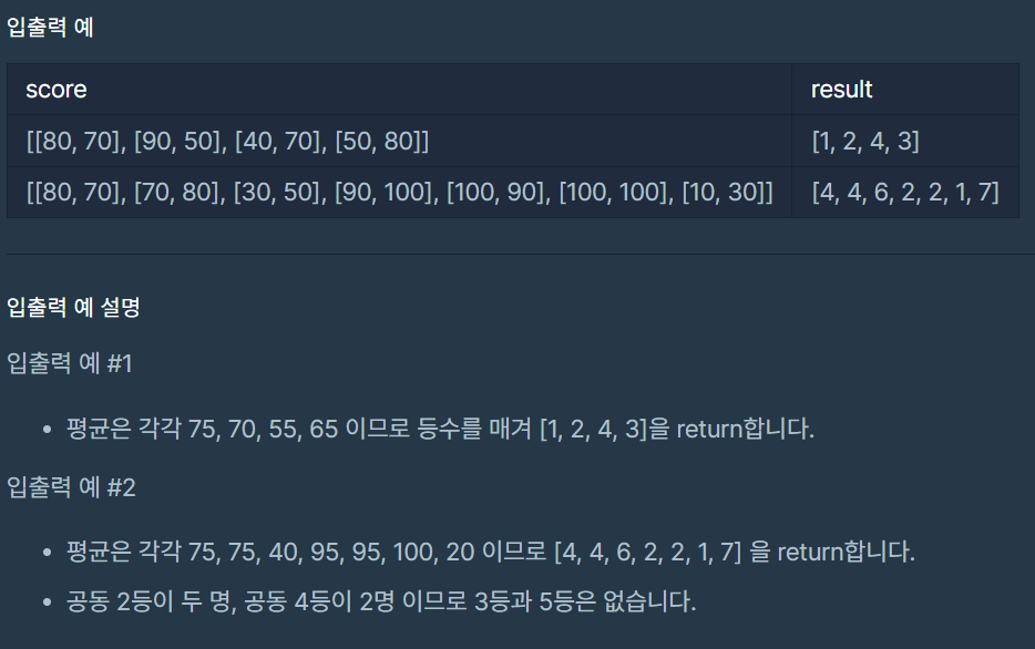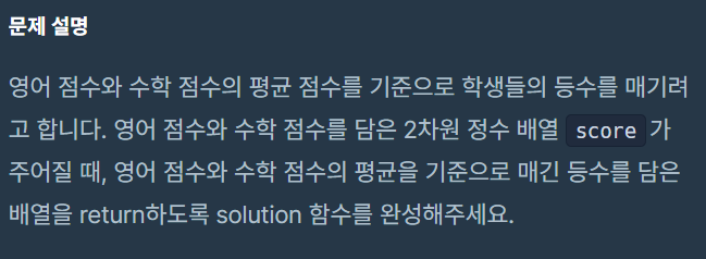 영어 점수와 수학 점수를 담은 2차원 정수 배열 score가 주어질 때,