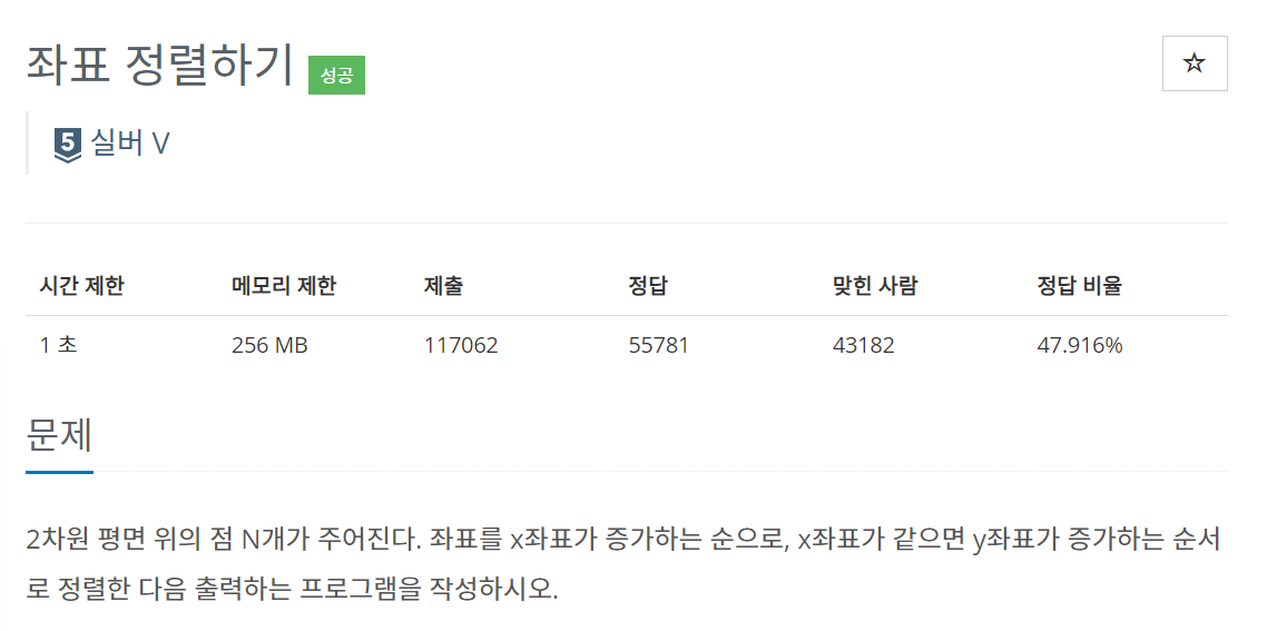 https://www.acmicpc.net/problem/11650