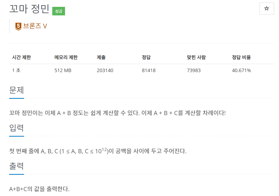 꼬마 정민이는 이제 A + B 정도는 쉽게 계산할 수 있다. 이제 A + B + C를 계산할 차례이다!