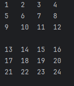 if(i!=0 && i % 5 == 0) System.out.println();