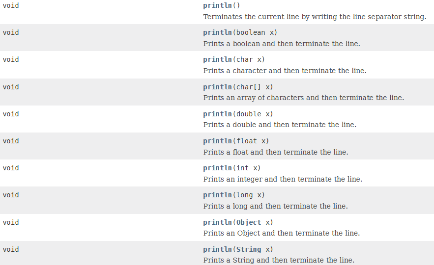 println의 메소드가 오버로딩 된 부분을 보면