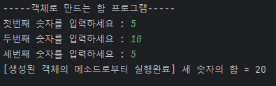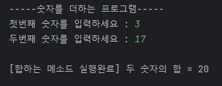 System.out.println("\n[합하는 메소드 실행완료] 두 숫자의 합 = " + result);