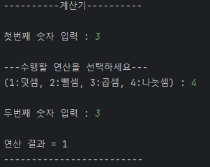 - switch문 : op 연산자를 통해 각각 다른 메소드로 이동하여 기능하도록 합니다.