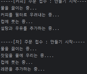 System.out.println("-----[커피] 주문 접수 : 만들기 시작-----");