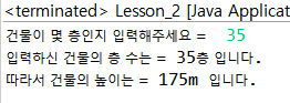 System.out.println("따라서 건물의 높이는 = "+result+ "m 입니다.");