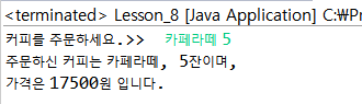 System.out.println("주문하신 커피는 "+coffee+", "+num+"잔이며,");