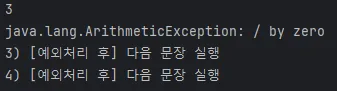 System.out.println("3) [예외처리 후] 다음 문장 실행");