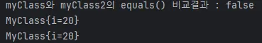 System.out.println("myClass와 myClass2의 equals() 비교결과 : " + myClass.equals(myClass2));