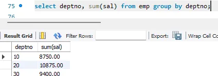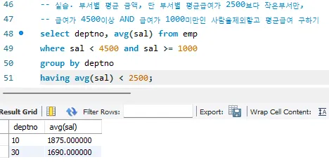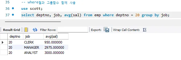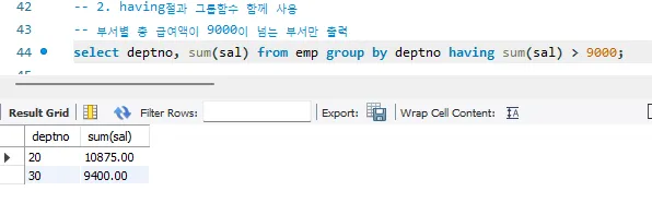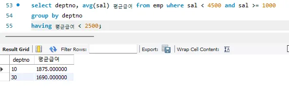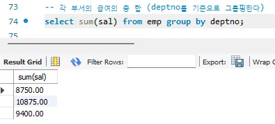 - deptno 컬럼을 추가하여 그룹핑해놓은 컬럼을 명시적으로 출력