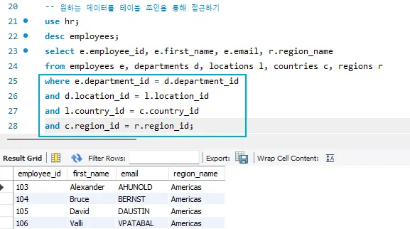 -- (ANSI 문법) 2. join using : 컬럼지정을 하는 것 (이 컬럼을 가지고 조인을 하라는 명령)