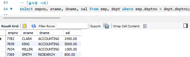 -- 단점 : 컬럼명이 중복될 수도 있다.