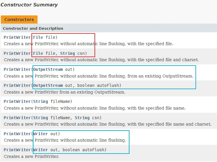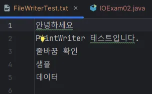 - PrintWriter로 출력을 편리하게 하고, 그 매개변수로 FileWriter를 받는다.