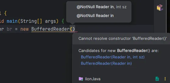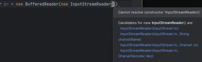 - BufferedReader의 매개변수로 Reader타입이 들어와야한다고 표시