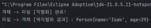 System.out.println("파일 -> 객체 [역직렬화 결과] : " + readPerson);
