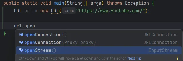 - openStream() : 웹페이지의 정보를 InputStream타입으로 얻어올 수 있다.