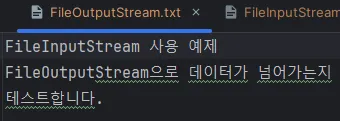 - FileOutputStream : 파일 시스템에 “바이트 단위로”로 데이터를 씀