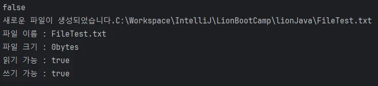 System.out.println(file.exists()); // 파일이 존재하는지 여부 출력