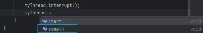 - stop() 메소드는 사용하지 않는 것을 권장 ➡️deprecated 된 메소드 (불안정한 메소드)