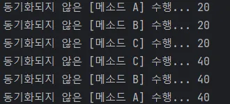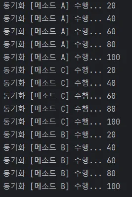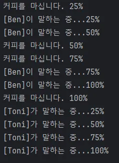 - 서로 경쟁적으로 실행이 되고 있음을 확인