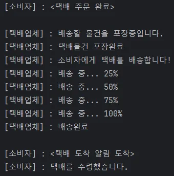 Thread.sleep(500); // 택배업체 스레드 시작 전 딜레이 지정 0.5초