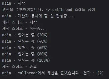 - 두 개의 스레드가 동시에 실행되어 각자의 작업을 수행