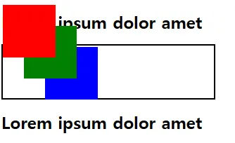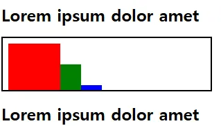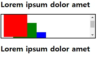 - <div>태그의 밖으로 넘치는 세 개의 사각형이 있다고 가정했을때