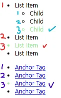 | 제한 범위 | 제한없이 모든 후손태그들 선택 | 직계 자식만 선택 |
