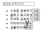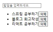 - 할 일 입력 후 엔터 입력 시 “할일이 등록되면서” 리스트에 정보 출력 (input태그에 이벤트onKeyDown 활용)