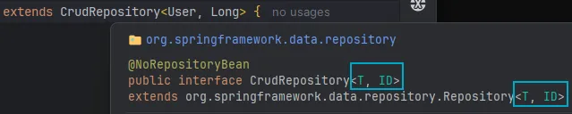 - CrudRepository의 인자로