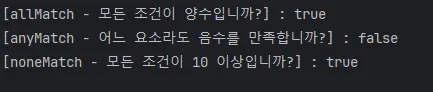 - 이 후 collect() 메소드 사용으로 중간연산인 filter()로 반환된 Stream을 toList()를 통해 리스트로 바꿔서 반환