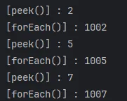 - peek() : 각 스트림의 요소에 대해 작업을 수행하지만 스트림 자체는 변화시키지 않고