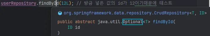 - findById() 메소드는 반환값으로 Optional을 리턴하기때문에