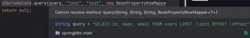 ➡️해결방법 : JdbcTemplate가 아닌 JdbcTemplate의 자녀객체인 NamedParameterJdbcTemplate을 사용해야함