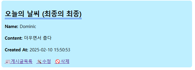 - 상세페이지에서는 날짜-시간 까지 출력할 수 있도록 format 적용