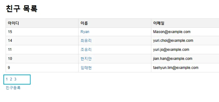 - 3페이지에 커서를 올렸을때 (localhost:8080/friends/list?page=3) 를 확인