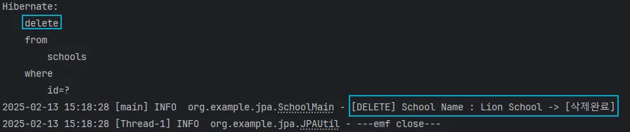 log.info("[DELETE] School Name : {} -> [삭제완료]", deletedSchool);