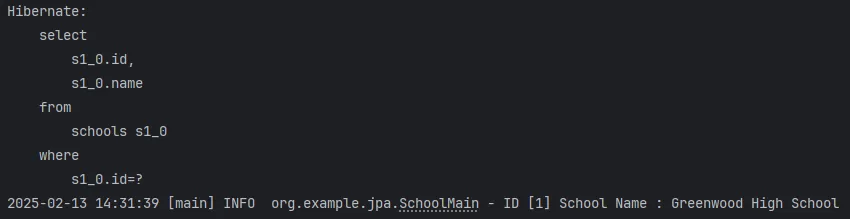 School school = entityManager.find(School.class, 1L);